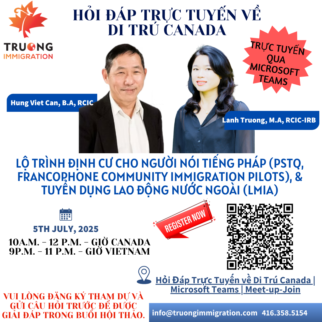 Truong Immigration invites you to an exclusive online Q&A session via Microsoft Teams, dedicated to French-speaking applicants who wish to immigrate to Canada.